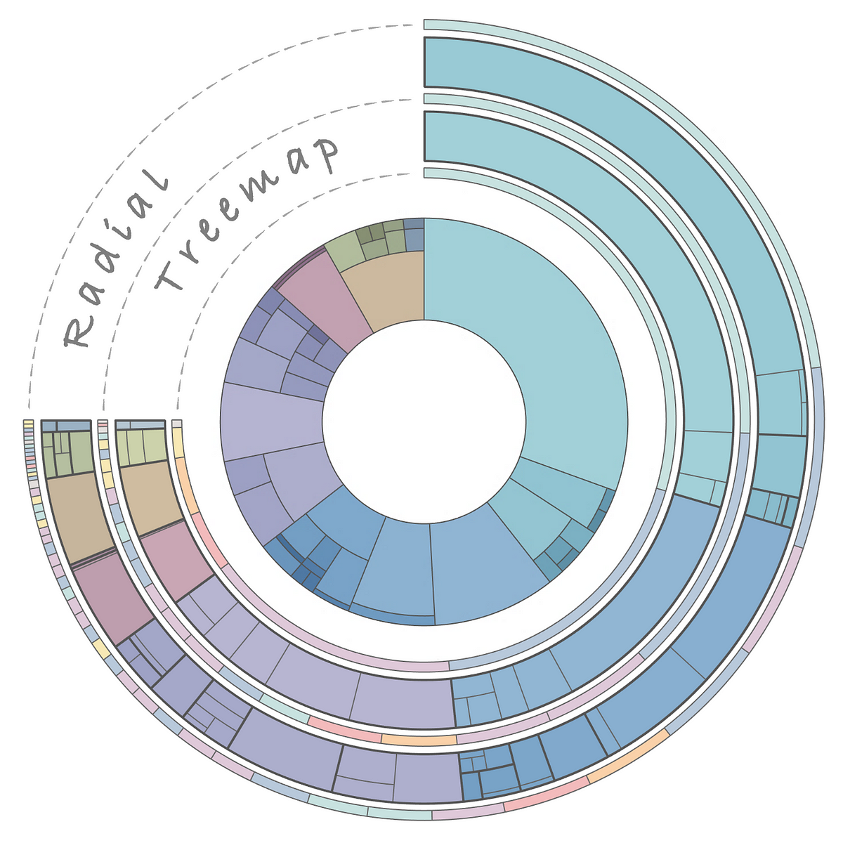 Learn about Radial Treemaps and create your own with Python Radial-Treemap by Nick GerendThe Treemap Concept The “Treemap” was introduced by Ben Shneiderman at the University of Maryland in the early 1990s¹. Simply put, it’s an efficient way of displaying hierarchical data as a set of nested rectangles. Although the concept is simple, the arrangement…
